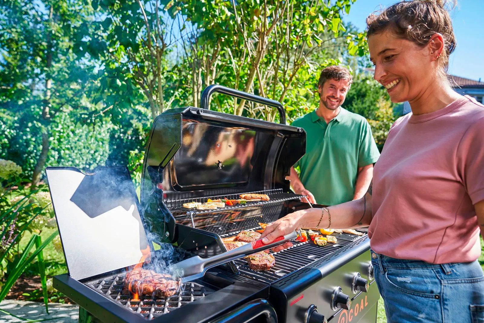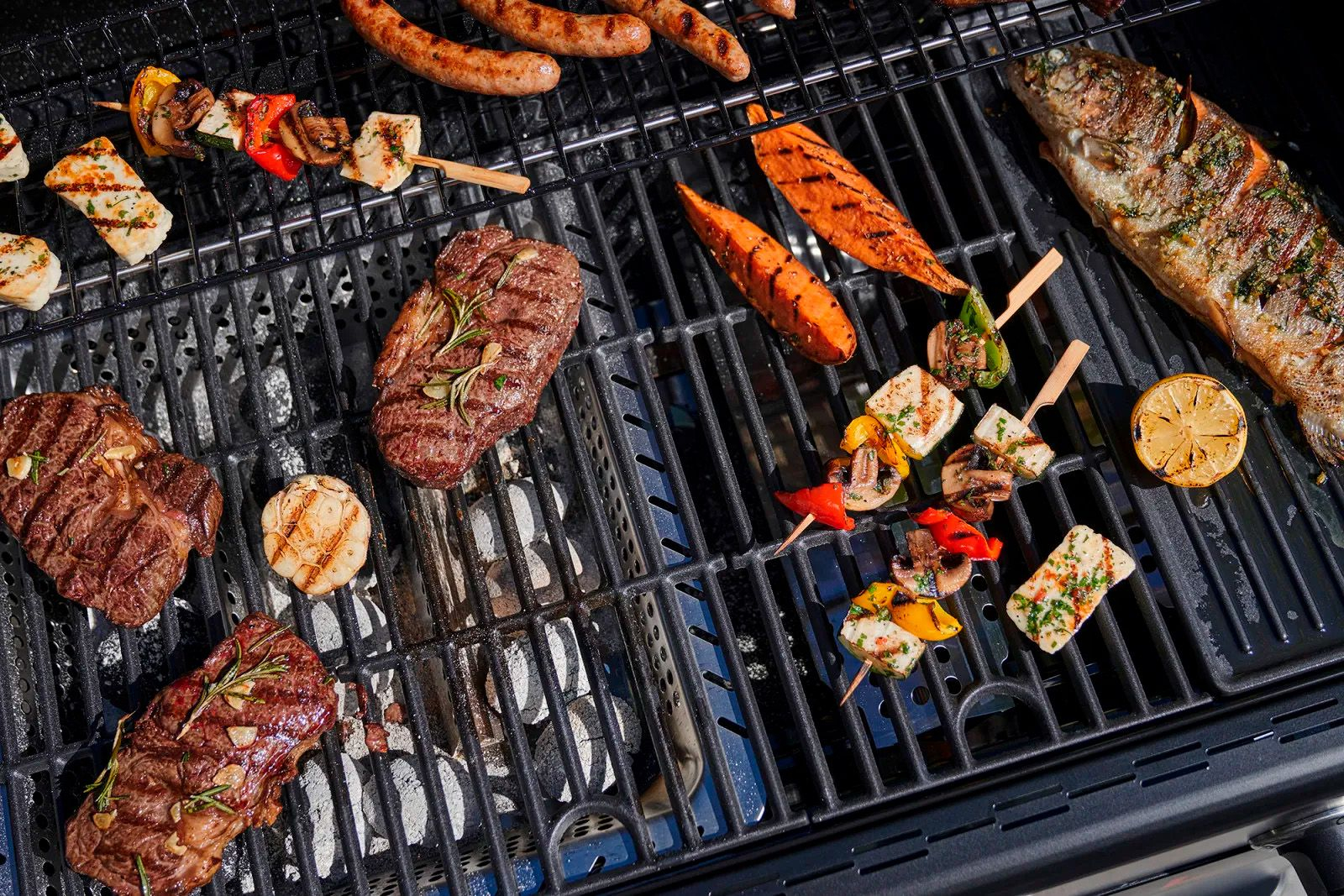 Cele doua tavi pentru carbuni patentate, realizate din otel inoxidabil, va permit sa gatiti cu gaz si cu carbuni in acelasi timp. Acestea asigura distribuirea uniforma a caldurii si previn aparitia flacarilor. Puteti trece, de asemenea, de la gatitul exclusiv pe gaz la gatitul exclusiv pe carbuni.