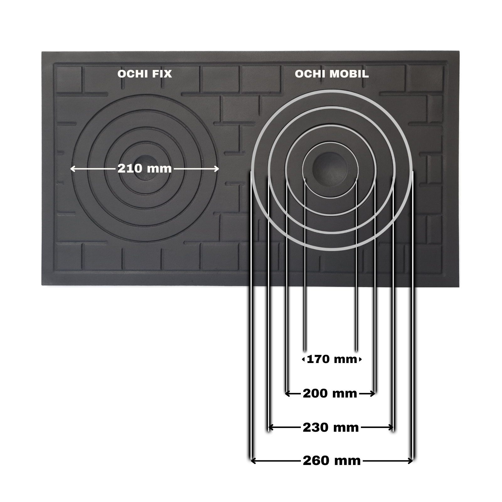 Ochiul fix de 210 mm este doar gravat în suprafață și nu are cercuri detașabile. Ochiul mobil de 260 mm are cercuri care se pot ridica, permițând apropierea vasului de foc pentru temperatură mai ridicată.
