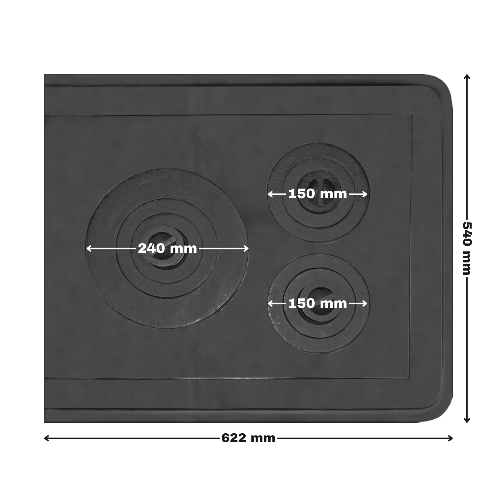 Plita din fontă cu ramă și trei ochiuri 622 x 540 mm este soluția completă pentru cei care își doresc un sistem de gătit eficient, stabil și ușor de montat pe sobă cu lemne. Fabricată din fontă rezistentă, această plită oferă o distribuție uniformă a căldurii și o durabilitate ridicată, fiind potrivită pentru sobe din zidărie sau teracotă utilizate în locuințe, cabane sau foișoare.