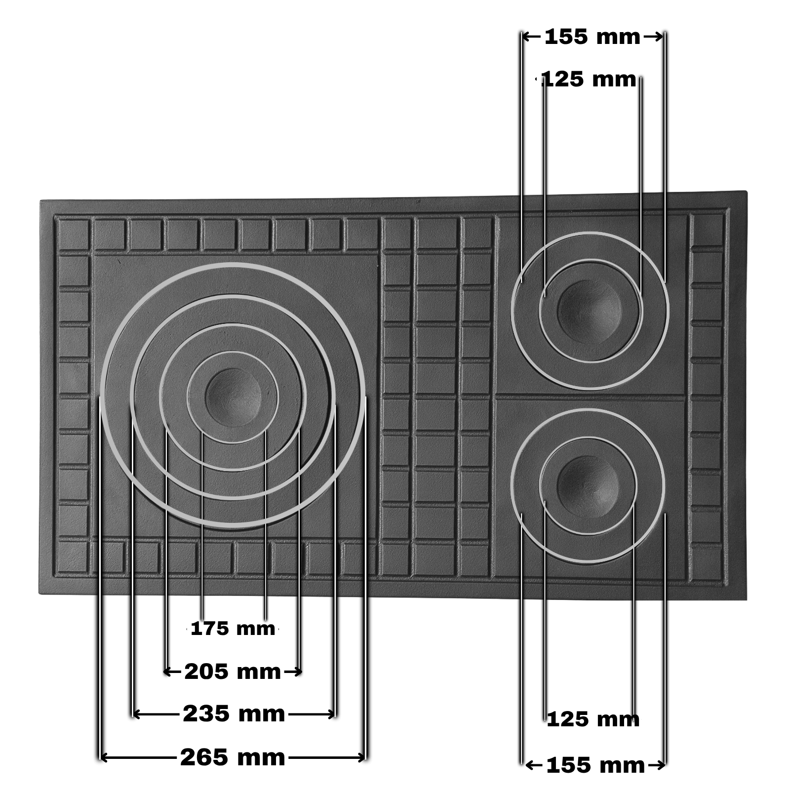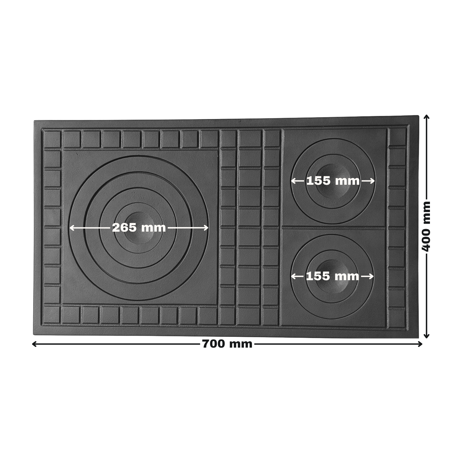 Această plită din fontă cu trei ochiuri 700 × 400 mm este potrivită pentru tine dacă ai nevoie să gătești mai multe preparate simultan pe o sobă pe lemne, deoarece are trei zone de gătit. Fabricată din fontă groasă de 17 mm, plita oferă rezistență la temperaturi ridicate, distribuie uniform căldura și menține temperatura constantă, iar dimensiunea 700 × 400 mm permite montajul ușor în majoritatea sobelor rustice sau moderne.