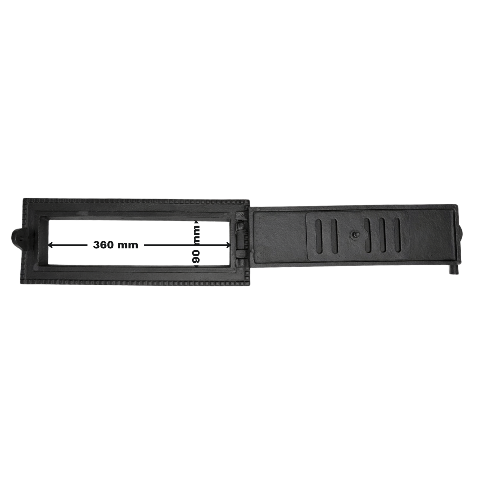 Cu dimensiuni de montaj de 380 x 110 mm, această ușă de cenușar din fontă se încadrează frumos în sobe și șeminee mari pe lemne. Este alegerea ideală pentru cei care caută un produs rezistent, funcțional și eficient, necesar pentru controlul arderii și întreținerea corectă a sobei.