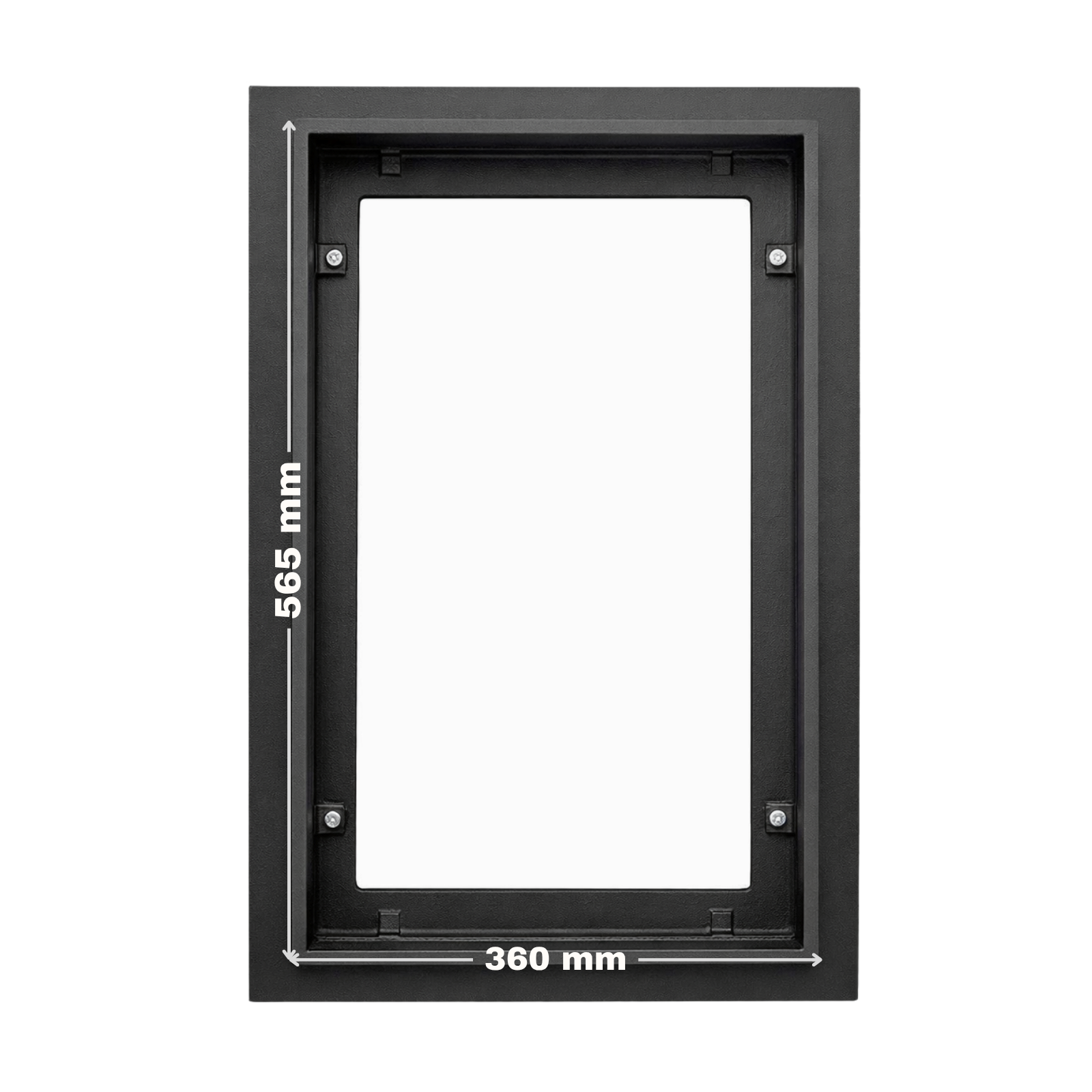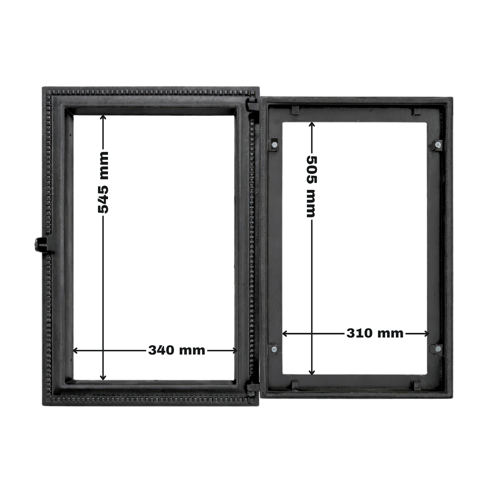 Cu dimensiuni de montaj de 565 x 360 mm, această ușă din fontă este potrivită construcții de afumători tradiționale sau moderne, unde este necesar controlul temperaturii și al fumului, fiind ideală pentru gospodării, curți, cabane sau utilizatori pasionați de preparate afumate autentice.