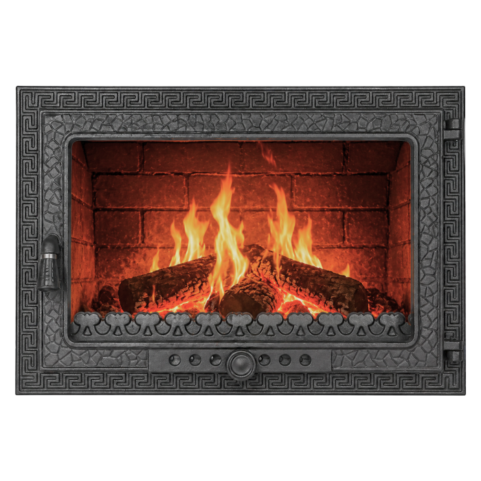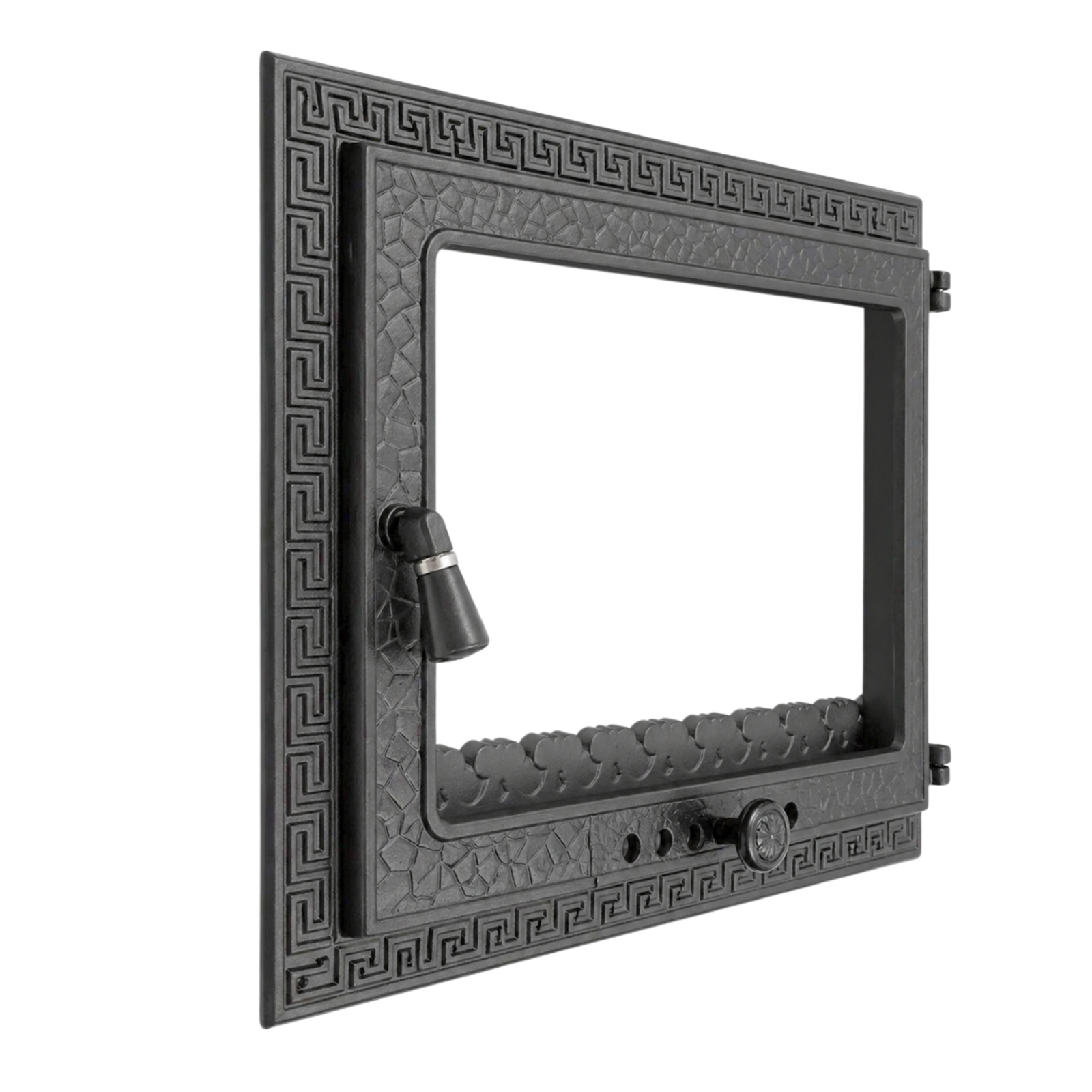 Suprafața generoasă a sticlei termorezistente permite o vizualizare amplă a flăcării, transformând șemineul într-un punct central estetic al încăperii. Grila de ventilație integrată contribuie la reglarea fluxului de aer, optimizând arderea și eficiența energetică. Sistemul de închidere solid și construcția robustă asigură o etanșare eficientă, pentru un tiraj corect și consum redus de lemne.