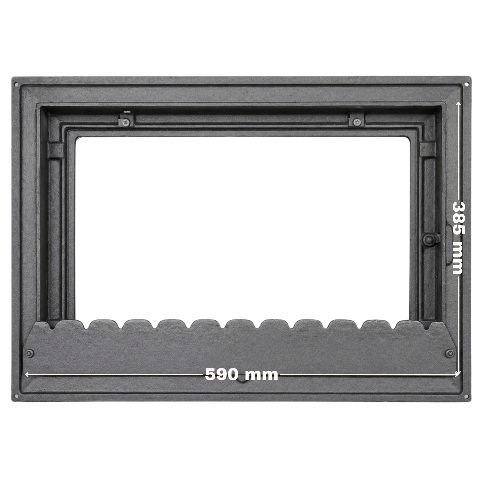 Cu dimensiuni de montaj de 590x385 mm, ușa de șemineu VS este potrivită pentru proiecte medii și mari, unde se dorește o vizibilitate amplă asupra focului, eficiență ridicată și un design solid, fiind ideală pentru locuințe moderne, case de vacanță sau spații cu accent pe confort și estetică.