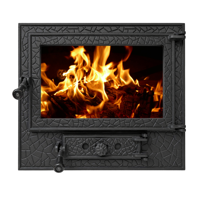 Suprafața generoasă a sticlei termorezistente permite o vizualizare amplă a flăcării, transformând șemineul într-un punct central estetic al încăperii. Grila de ventilație integrată contribuie la reglarea fluxului de aer, optimizând arderea și eficiența energetică. Sistemul de închidere solid și construcția robustă asigură o etanșare eficientă, pentru un tiraj corect și consum redus de lemne.