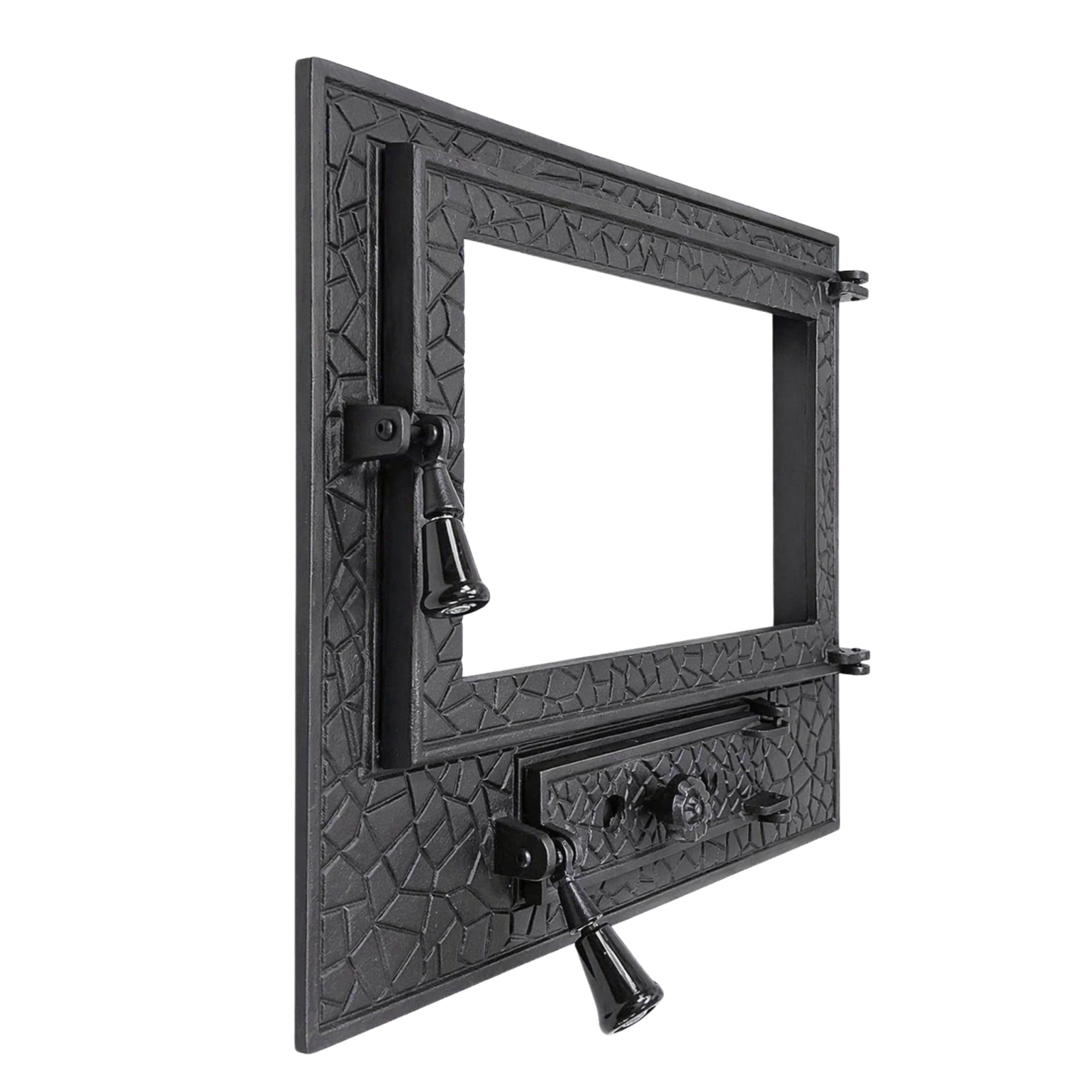Ușa de șemineu Panoramic mare din fontă este o soluție premium pentru construcția sau modernizarea șemineelor și sobelor pe lemne, ce oferă o combinație ideală între rezistență, eficiență și design. Fabricată din fontă de înaltă calitate, această ușă este concepută pentru a rezista la temperaturi ridicate și utilizare intensă, menținând în același timp o distribuție optimă a căldurii în focar.
