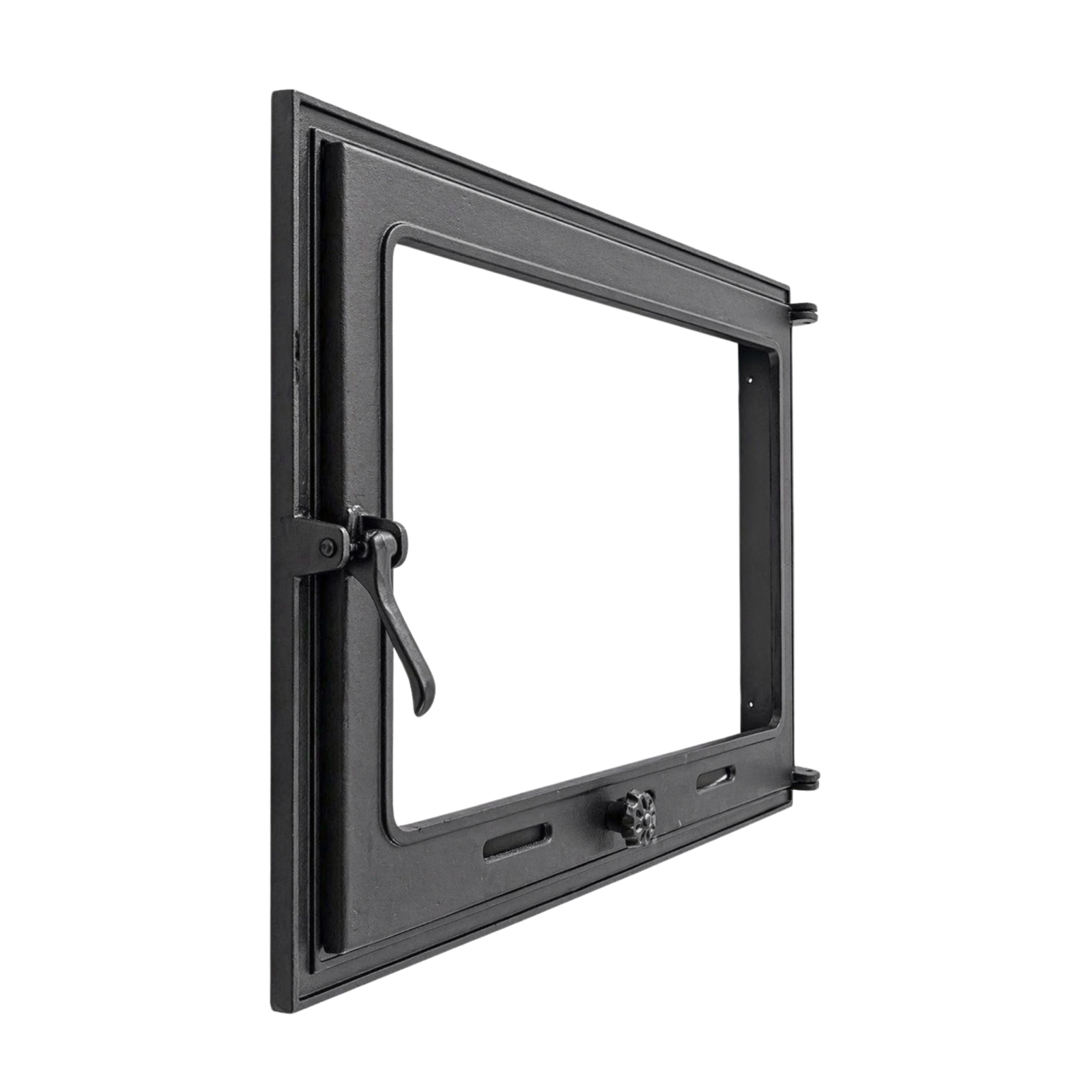 Suprafața generoasă a sticlei termorezistente permite o vizualizare amplă a flăcării, transformând șemineul într-un punct central estetic al încăperii. Grila de ventilație integrată contribuie la reglarea fluxului de aer, optimizând arderea și eficiența energetică. Sistemul de închidere solid și construcția robustă asigură o etanșare eficientă, pentru un tiraj corect și consum redus de lemne.