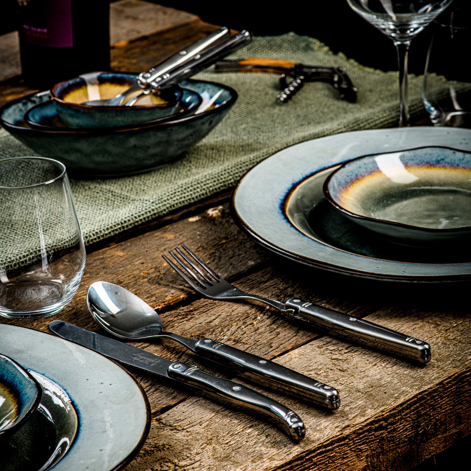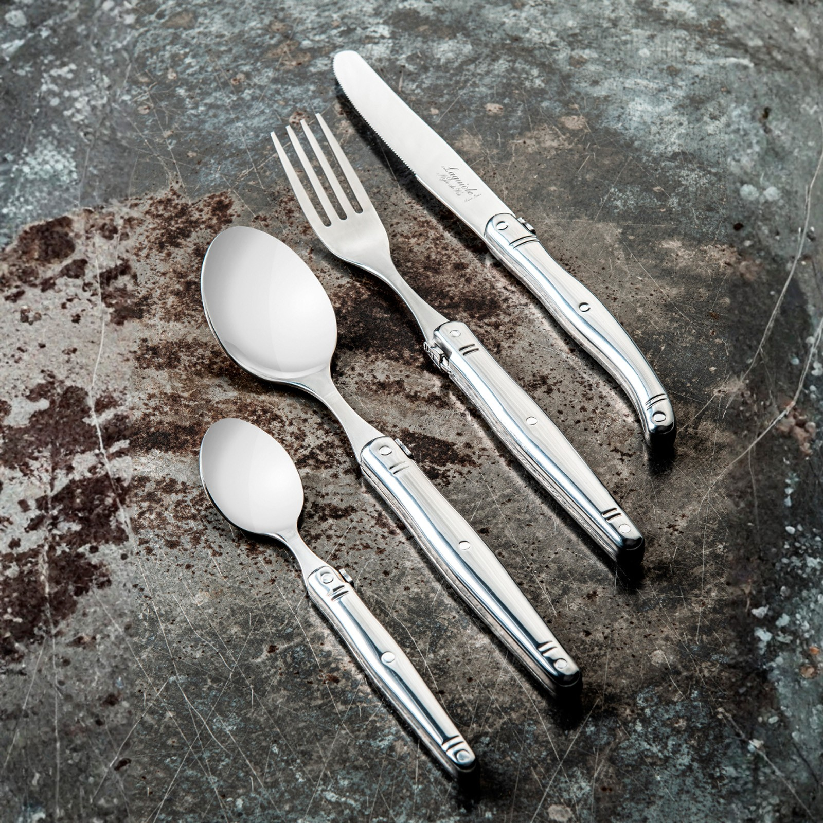 The 24 piece stainless steel cutlery set from the Laguiole Style de Vie Premium Line suits every table style. Whether you prefer a bold, elegant or simple table setting, this set is always a good choice. Because it is made entirely of stainless steel, the cutlery has a timeless and sleek look. The set is complete with six forks, six knives, six spoons and six dessert spoons.