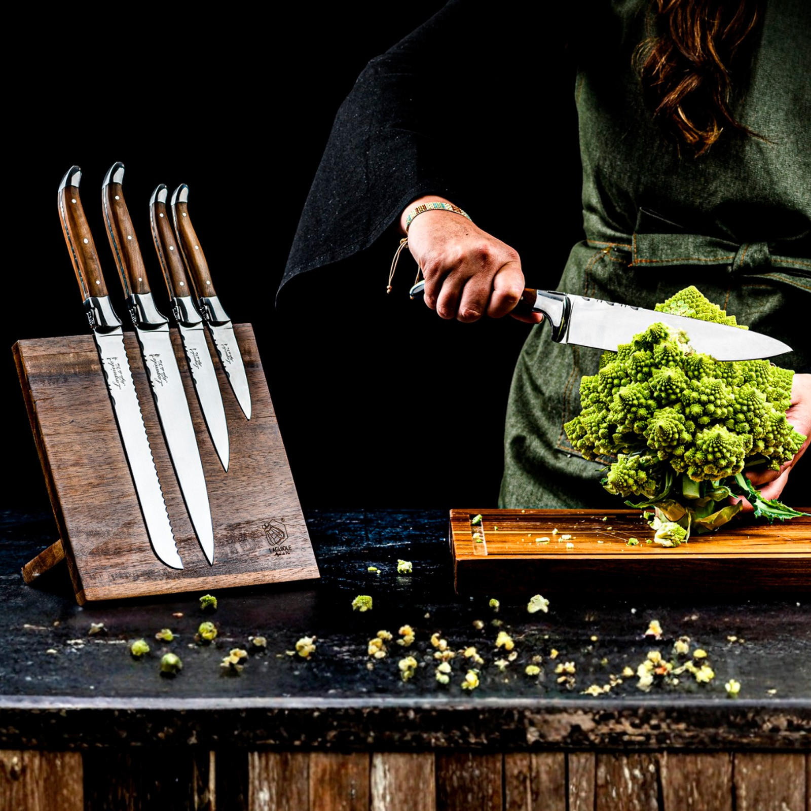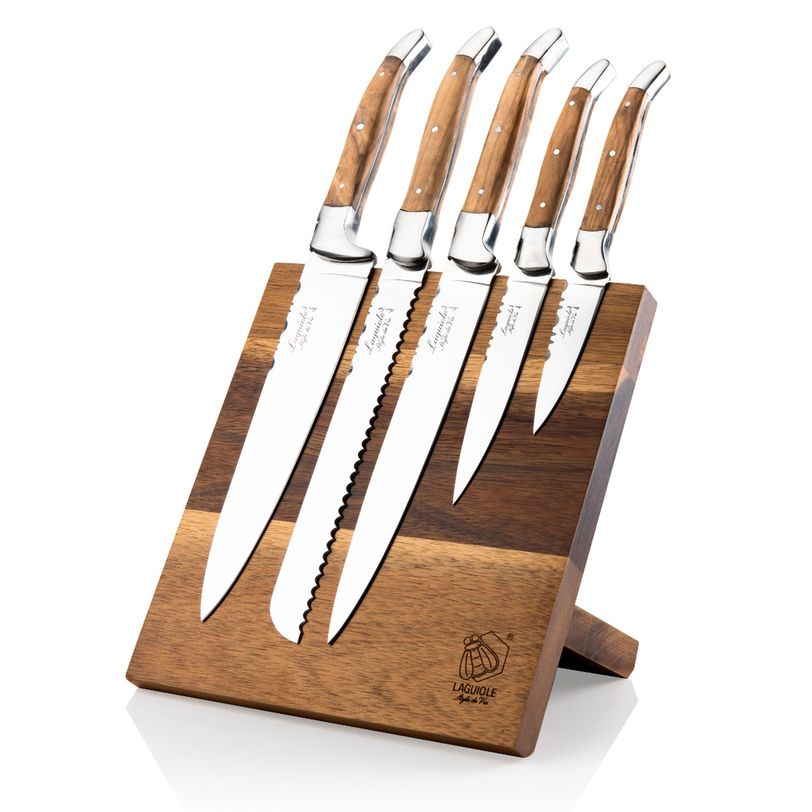 Cu acest set elegant de cutite de bucatarie din gama Luxury Line, veti avea intotdeauna la indemana cele mai importante ustensile. Impreuna cu suportul magnetic pentru cutite din lemn de maslin, acesta va deveni un adevarat punct de atractie in bucataria dvs.