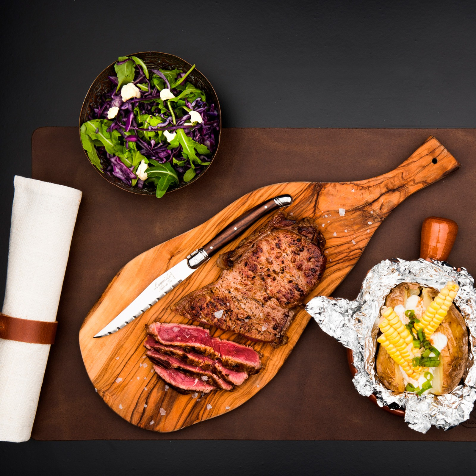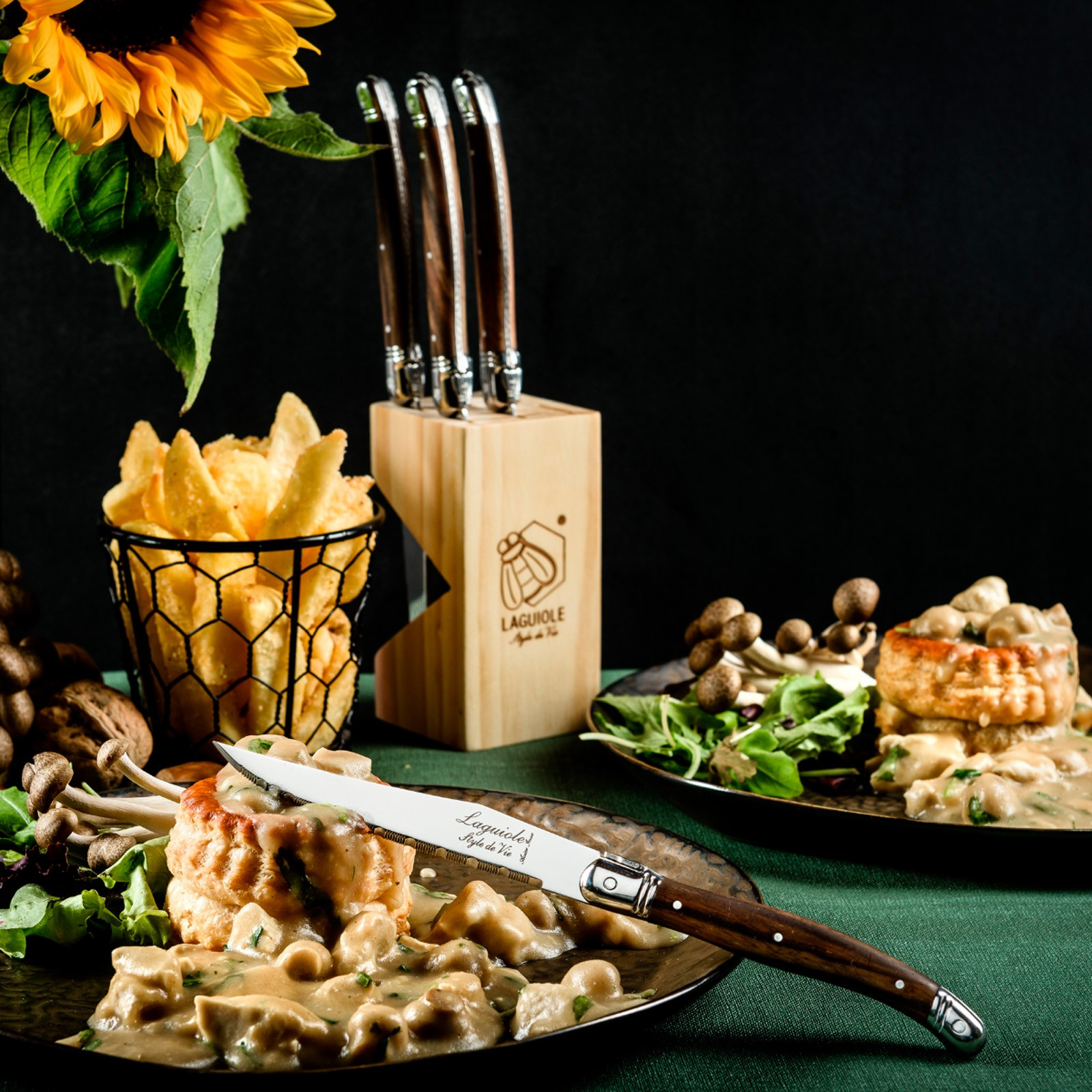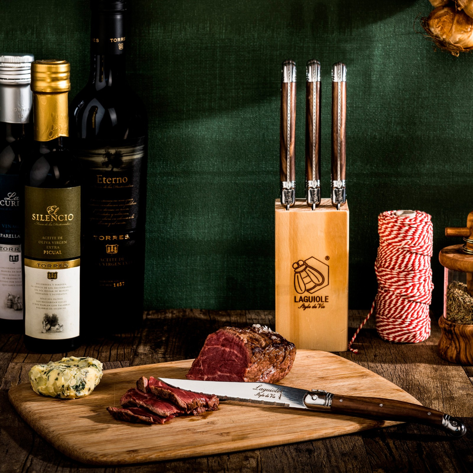 Cu acest set de sase cutite de friptura din lemn de culoare inchisa, din gama Laguiole Style de Vie Premium Line, puteti taia cu usurinta o bucata frumoasa de carne. Lamele zimtate ale cutitelor de friptura sunt fabricate din otel inoxidabil. Grosimea lamei este de 1,8 mm, iar cutitele pot fi introduse in masina de spalat vase. Fiecare set este livrat intr-un suport practic din lemn. Setul de sase cutite de friptura din gama Premium Line este disponibil in multe alte culori si materiale.