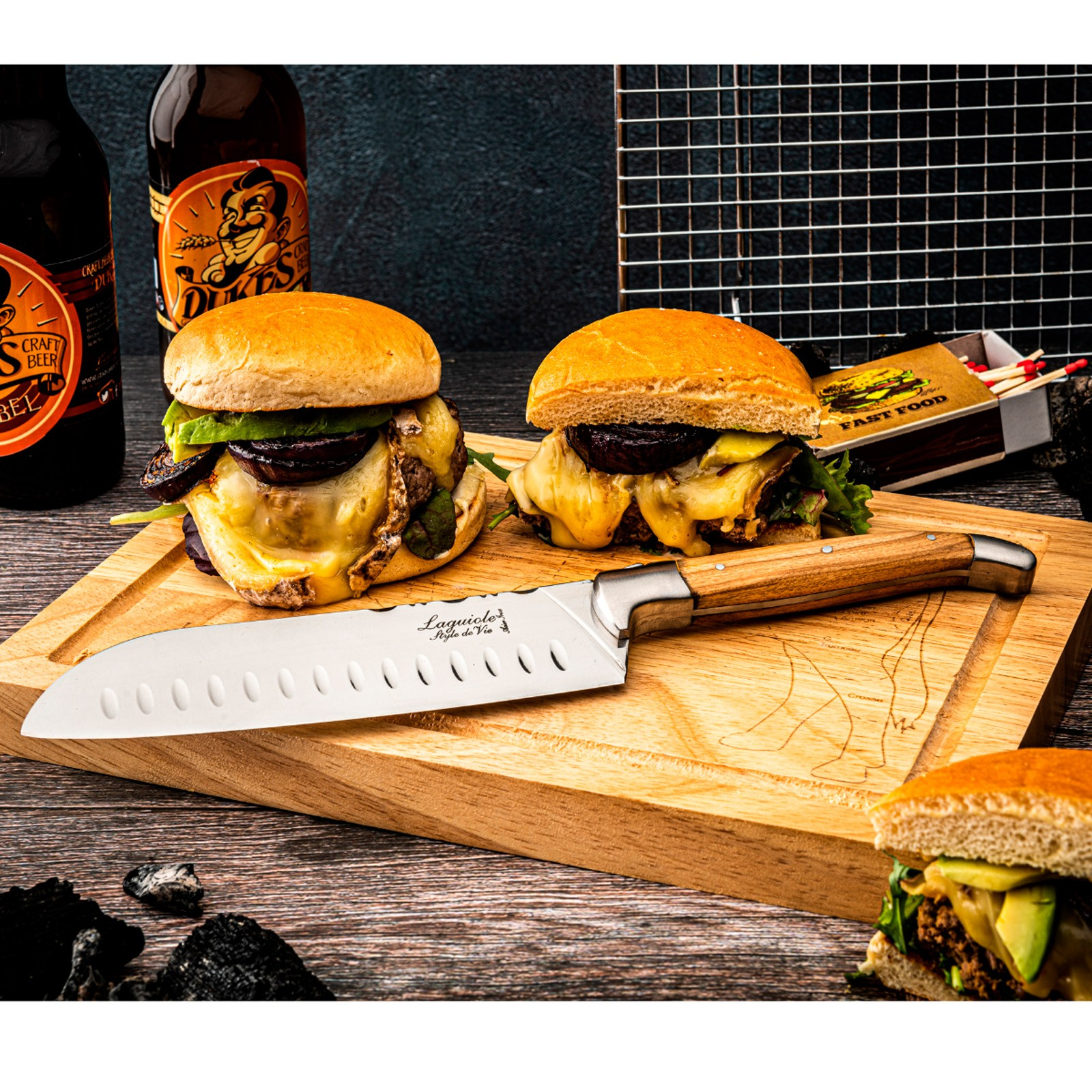 The olive wood Santoku knife with cutting board from the Laguiole Style de Vie Luxury Line is a perfect gift for any cooking enthusiast. The name Santoku means “three virtues”, referring to the knife’s ability to slice, dice and finely chop. The smooth stainless steel blade is paired with a beautiful olive wood handle.