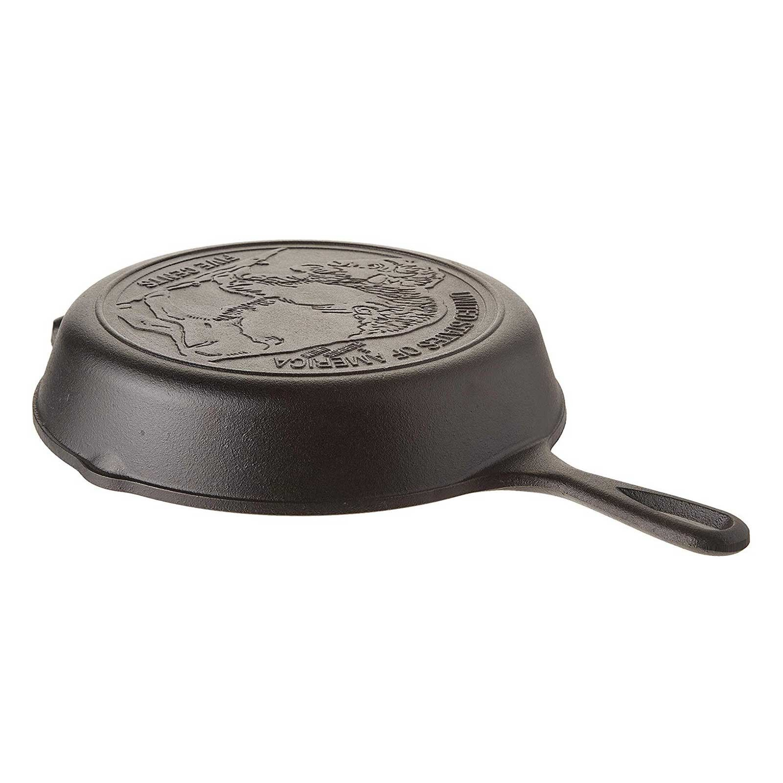 Ca mod de a sarbatori viata naturala exotica din America, aceasta tigaie de 26 cm are imprimat la baza modelul vechii monede Buffalo, ceea ce o face un accesoriu de care se pot bucura atat iubitorii vaselor din fonta, cat si colectionarii pieselor de gen. Aceasta tigaie este prevazuta cu o margine proeminenta, dar si cu un maner usor de manevrat, ambele oferind atat control excelent, cat si posibilitatea de depozitare prin atarnare atunci cand nu folositi tigaia. Va veti bucura de o distributie si de o retentie excelenta a caldurii pentru o gatire constanta, uniforma. Tigaia este asezonata corespunzator pentru un vas de fonta si gata de utilizare.