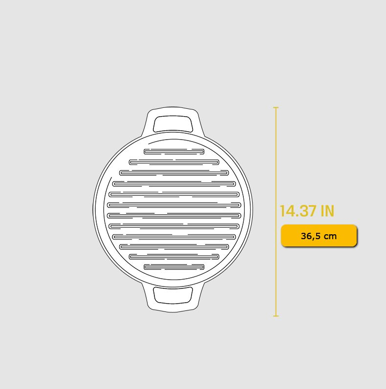 • Dimensiuni: 30,5 cm diametru x 36,5 cm lungime cu manere x 15,4 cm inaltime